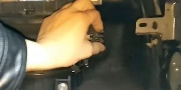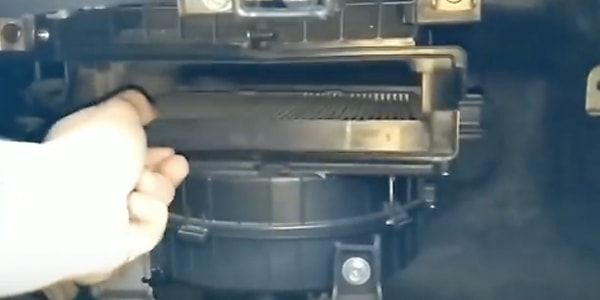 Откиньте бардачок вниз. В глубине под передней панелью в горизонтальном положении находится короб с фильтром салона.